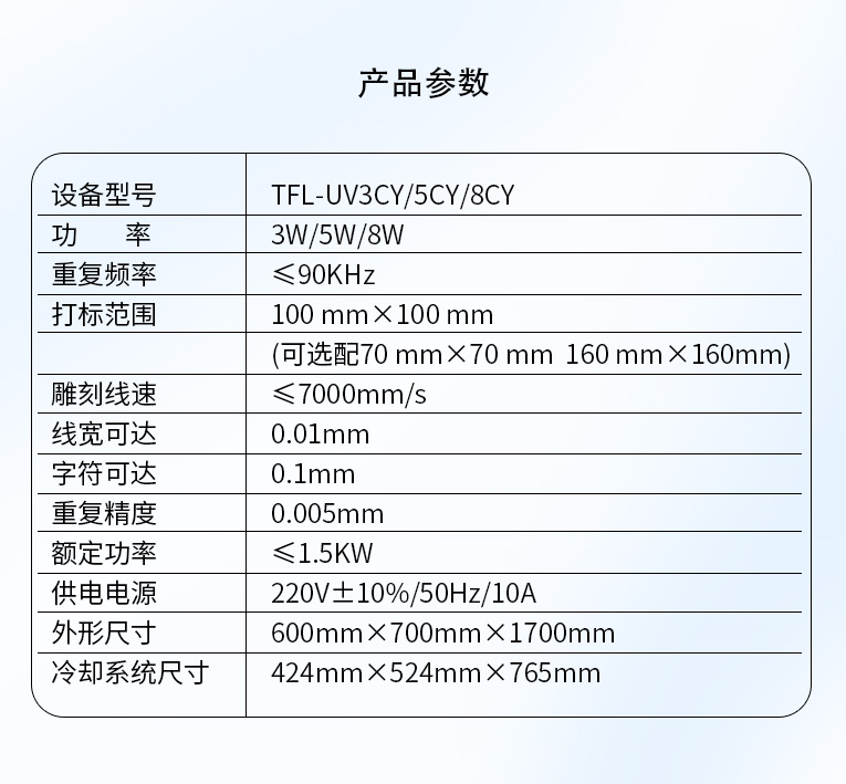 通發(fā)紫外激光打標機技術參數(shù):