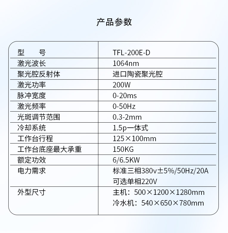 主機(jī):500×1200×1280mm 冷水機(jī):540×650×780mm |