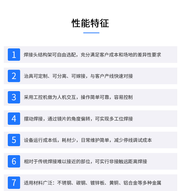 2、強(qiáng)大的PC控制,易于編程、調(diào)試和維護(hù)。可完成自動(dòng)或半自動(dòng)的點(diǎn)焊、對(duì)接焊、疊焊、密封焊,針對(duì)復(fù)雜的平面直線(xiàn)、圓弧及任意軌跡的焊接。